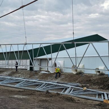 This featured project showcases a modernized sow complex centered on a new all-steel farrowing barn, complemented by two retrofitted barns for gestation and GDU operations. Originally constructed in 2013 by Bower Ag as a 10,000-head wood-frame finishing site, the facility was transformed into a 6,000-sow breeding complex. Following a fire at another location, the customer committed to steel construction for enhanced safety, longevity, and insurability.